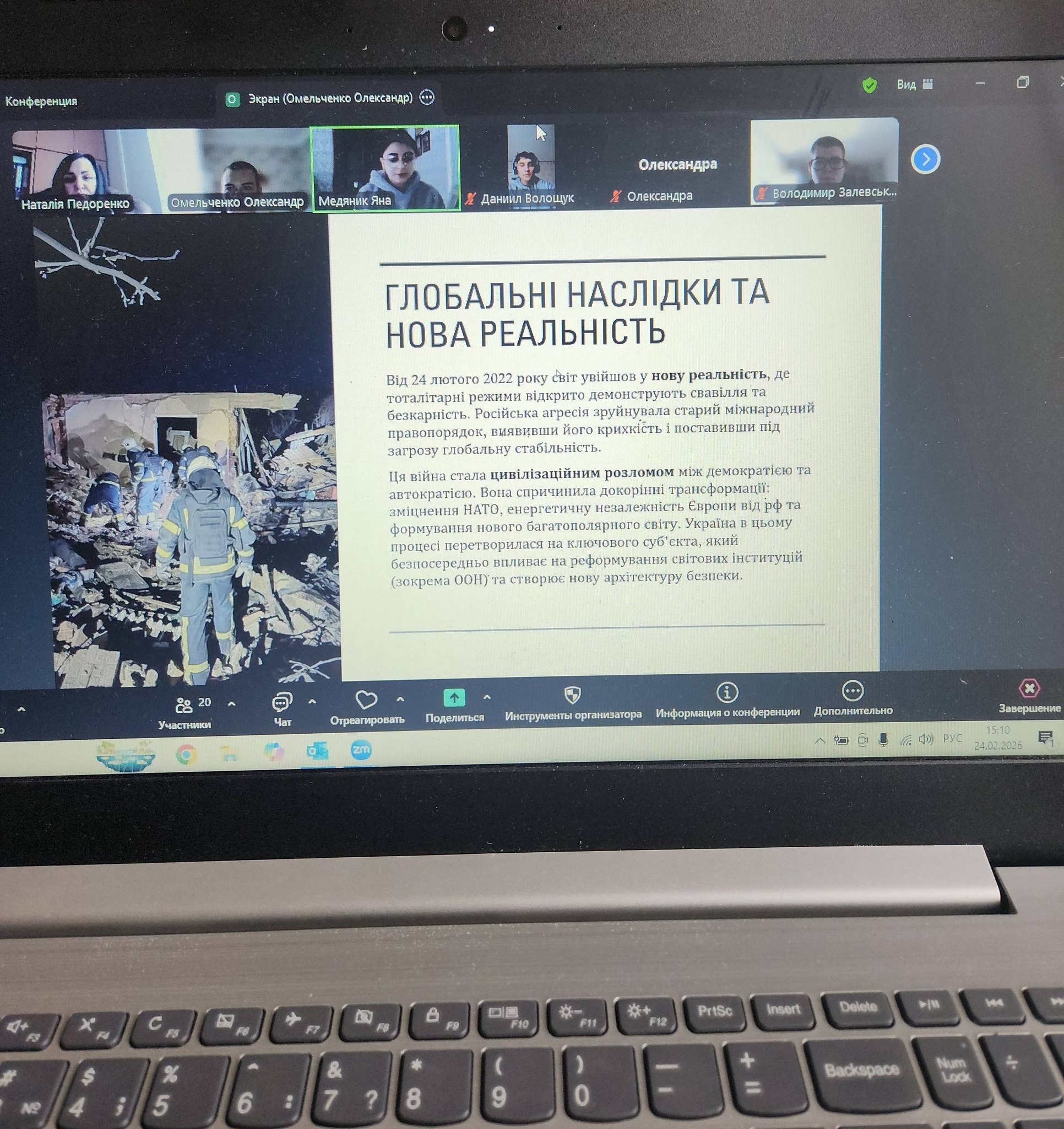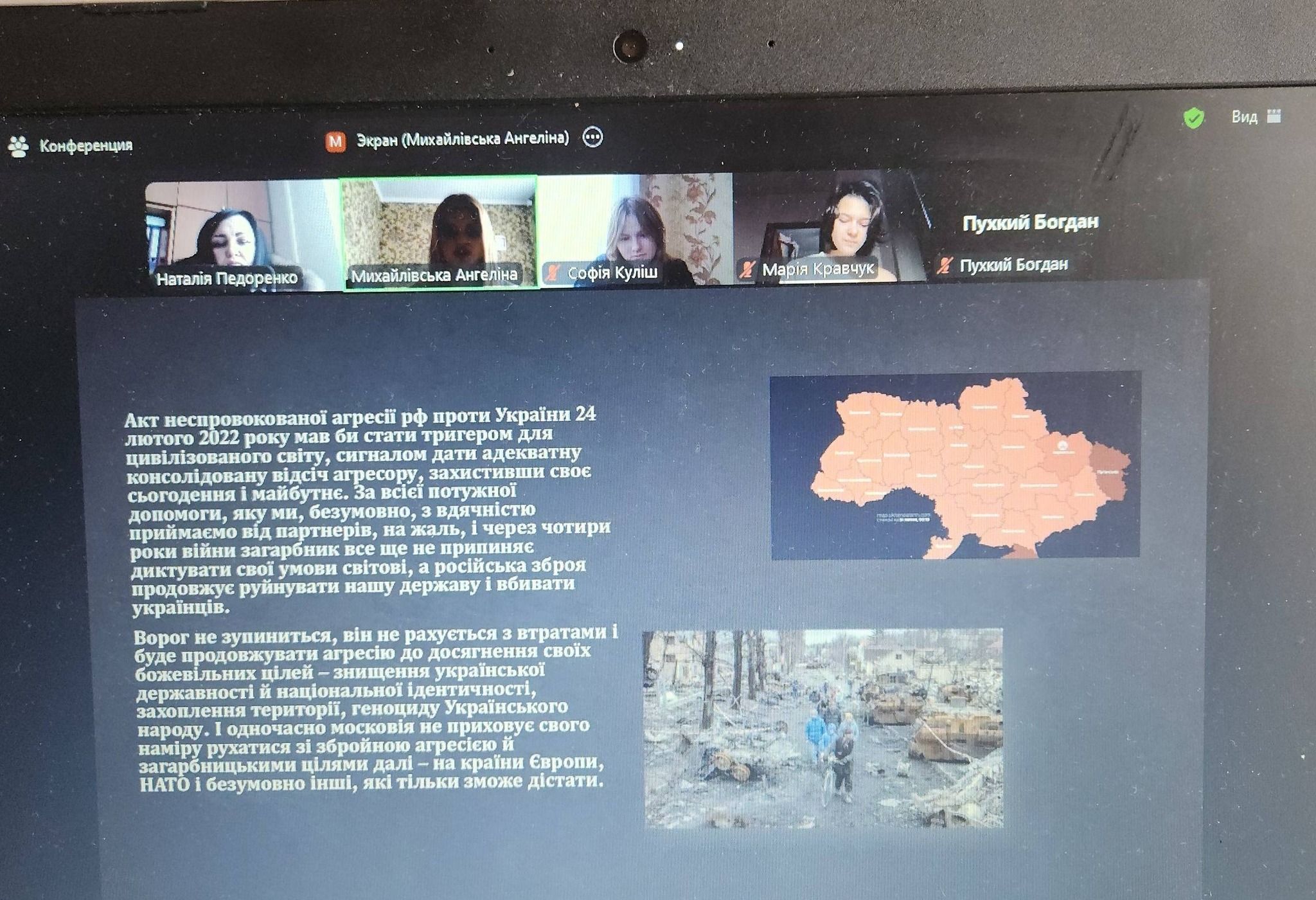 Під час заходу згадали 24 лютого 2022 року, героїчну оборону Київ, події в Маріуполь, трагедію Буча, стійкість Харків та звільнення Херсона. Учасники переглянули інформаційні матеріали, обговорили ключові події та міжнародну підтримку України.