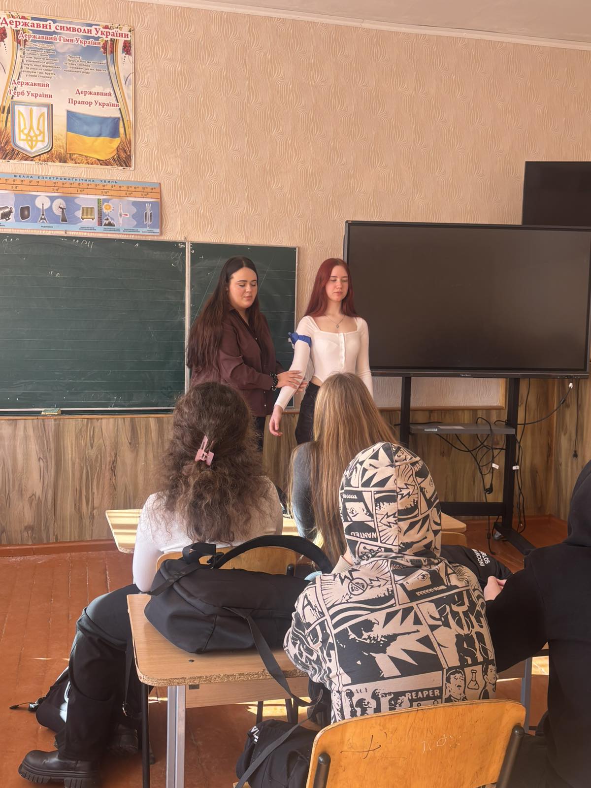 Студентами був проведений тренінг із зупинки кровотеч за допомогою турнікетів. Старшокласники гімназії активно відпрацьовували накладання турнікетів та отримали відповіді на свої запитання.